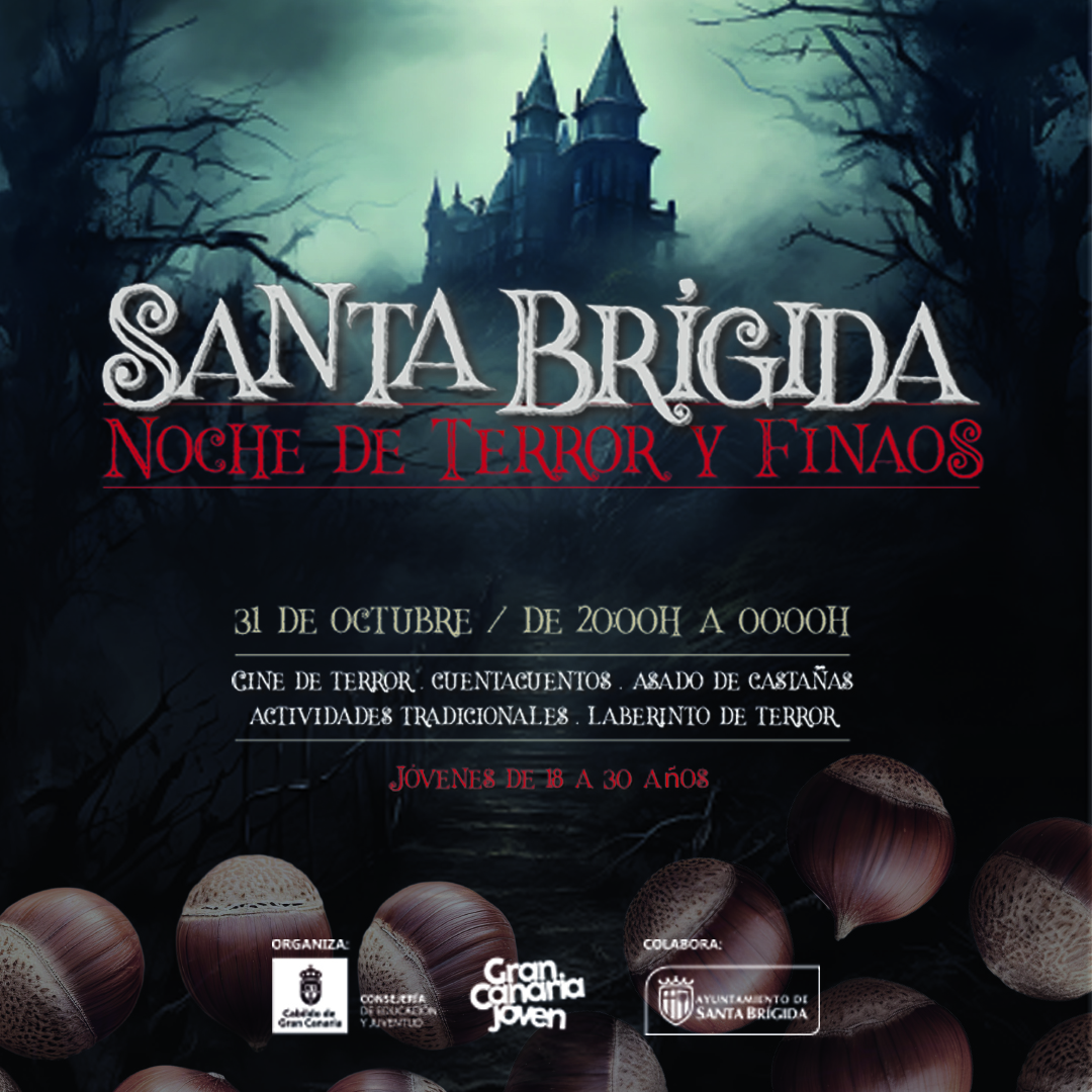 En el casco antiguo de Santa Brígida nos aguardan muchas emociones fuertes gracias a un evento que conjuga Halloween y la Noche de Finados. El 31 de octubre tienes una cita que contará con una inquietante casa del terror, asado de castañas, cuentacuentos y diferentes actividades, como un divertido laberinto. De 20:00 h. a 00:00 h.