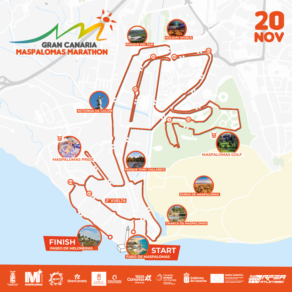 La salida se dará en el emblemático faro de Maspalomas, mientras que la meta tendrá lugar en el Paseo de Meloneras. En esta ocasión, será en sentido contrario al circuito del año pasado, con lo que se espera favorecer la circulación y disminuir el tráfico.
